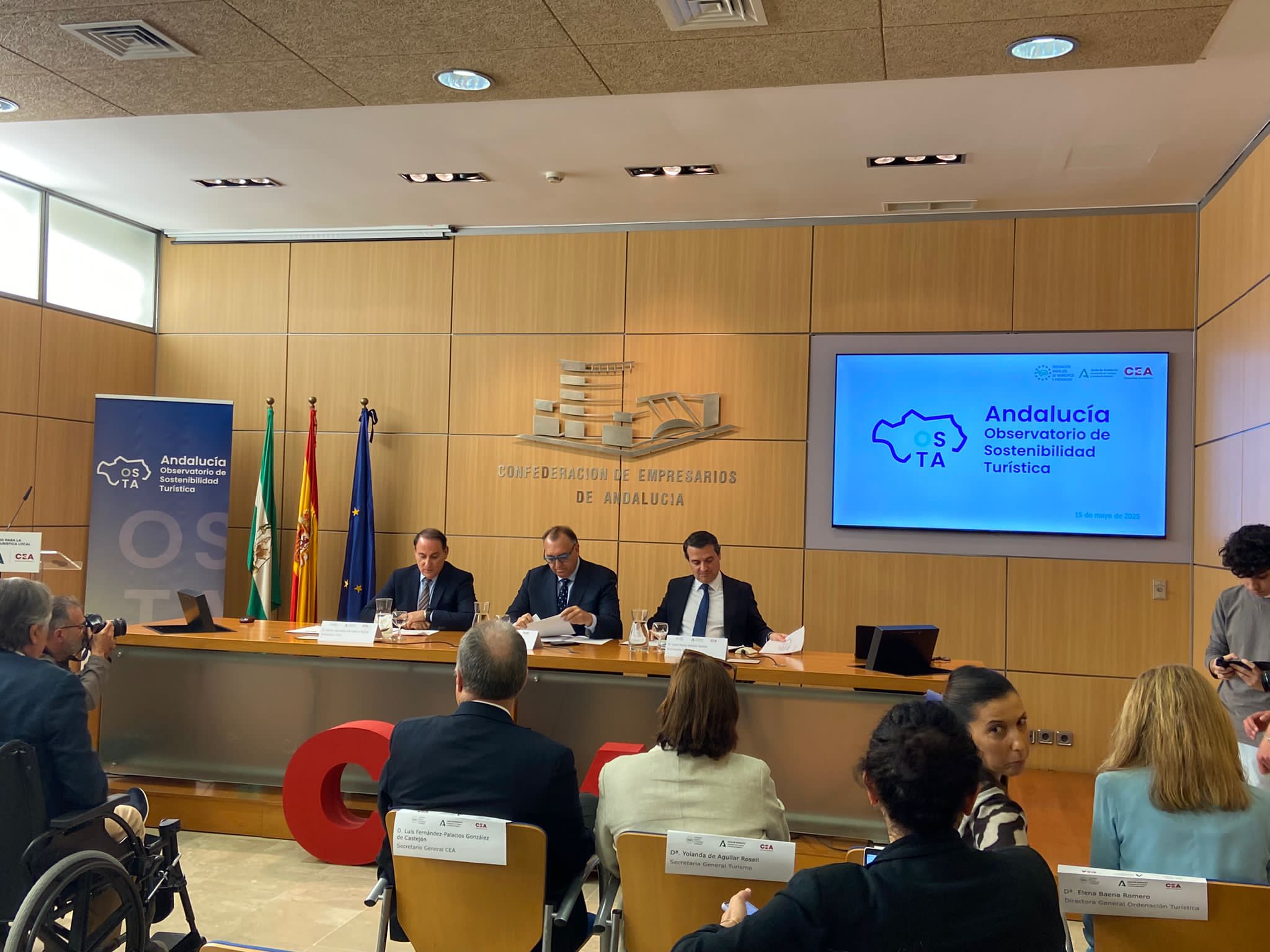 El acto, celebrado en la sede de la CEA en Sevilla, ha contado con la presencia del consejero de Turismo y Andalucía Exterior de la Junta de Andalucía, Arturo Bernal; el presidente de la FAMP y alcalde de Córdoba, José María Bellido, y el presidente de la CEA, Javier González De Lara, así como los técnicos que han presentado a prensa los indicadores definidos y las principales conclusiones.