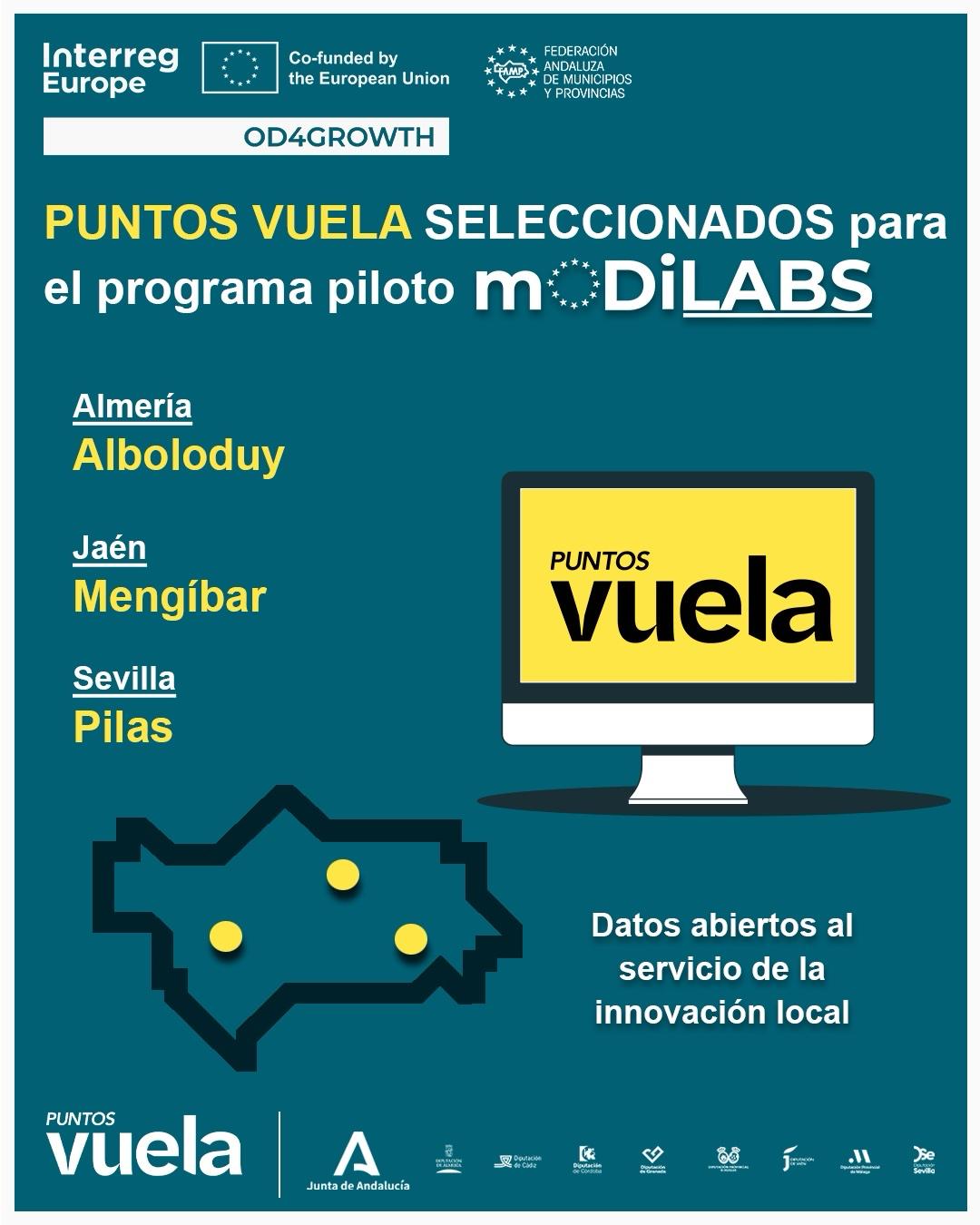 Ha valorado la participación de los tres municipios seleccionados, Alboloduy (Almería), Mengíbar (Jaén) y Pilas (Sevilla), agradeciendo a los responsables políticos y a los equipos técnicos de los Puntos Vuela su compromiso y predisposición a cooperar. “Contar con vuestra participación, no es sólo un reconocimiento al trabajo que ya venís realizando, es también una apuesta por un modelo de gobernanza que sitúa a los municipios en el centro de la transformación digital y social”. Con mODiLABS, añadió, “iniciamos un proceso de experimentación, aprendizaje y colaboración que permitirá a cada municipio desarrollar soluciones basadas en datos, evidencias y participación ciudadana, y convertirlas en escalables. Y lo hacemos desde un enfoque profundamente municipalista: fortaleciendo capacidades locales, compartiendo conocimiento y generando un impacto real en el territorio”.