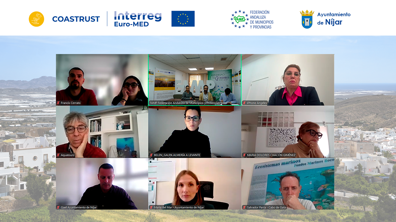 A esta reunión virtual, organizada con la colaboración del Ayuntamiento de Níjar, se ha convocado al grupo de actores locales consolidado el pasado noviembre tras la celebración de un primer encuentro presencial en Níjar. Compuesto por representantes de la administración local, autonómica y estatal, asociaciones de empresarios, agencias sectoriales, grupos de desarrollo, organizaciones sin ánimo de lucro y varios agentes de la sociedad civil, como asociaciones vecinales o movimientos ecologistas, este grupo de actores locales se ha constituido como el núcleo de la implementación local del proyecto, cuyo conocimiento del territorio permitió en noviembre la elaboración de un diagnóstico de los desafíos, oportunidades, posibles áreas de intervención y actuaciones potenciales, punto de partida para la elaboración de la mencionada estrategia de gestión sostenible del litoral en clave de custodia costera que el proyecto prevé poner a disposición del Ayuntamiento de Níjar y la ciudadanía.