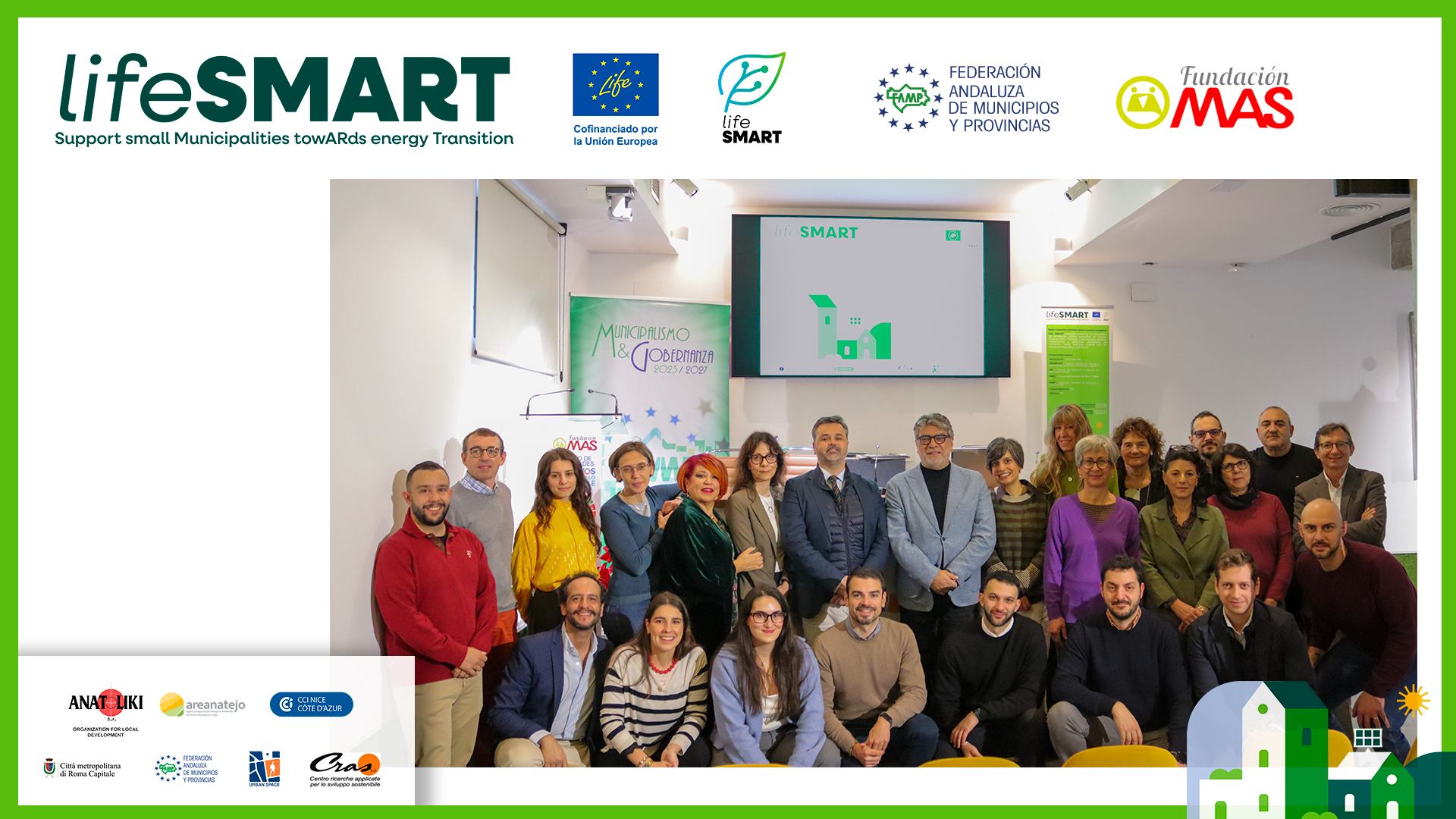 Life-SMART “Apoyo a pequeños municipios para la transición energética”, es un proyecto que comenzó en octubre de 2023, tiene una duración de 30 meses y cuenta con un partenariado compuesto por la Federación Andaluza de Municipios y Provincias (España), la Agencia Regional de Energía y Medio Ambiente del Norte de Alentejo y Tajo (Portugal), la Cámara de Comercio e Industria de Niza – Costa Azul (Francia), el Área metropolitana de Roma capital (Italia), U-SPACE S.L (España), Cras SRL (Italia) y liderado por la Organización para el Desarrollo Local ANATOLIKI SA (Grecia).