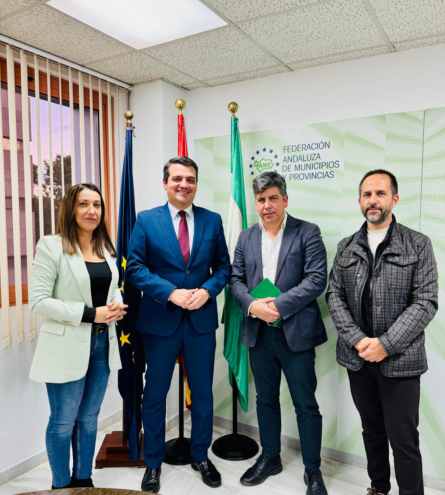 El presidente de la Federación Andaluza de Municipios y Provincias (FAMP) y alcalde de Córdoba, José María Bellido, junto a la secretaria general de la federación, Yolanda Sáez, ha mantenido este pasado miércoles un encuentro institucional con el presidente y vicepresidente de la Asociación para el Desarrollo Rural de Andalucía (ARA), Rafael Llamas Salas y Juan Carlos Expósito, respectivamente. El objetivo de esta reunión de trabajo ha sido establecer una hoja de ruta que marque las líneas de actuación para fomentar el progreso y la innovación en los municipios rurales, “municipios que son fundamentales para vertebrar la sociedad andaluza siendo referentes del sector primario y, además, porque son vitales para fijar población en el territorio”, según ha señalado Bellido.