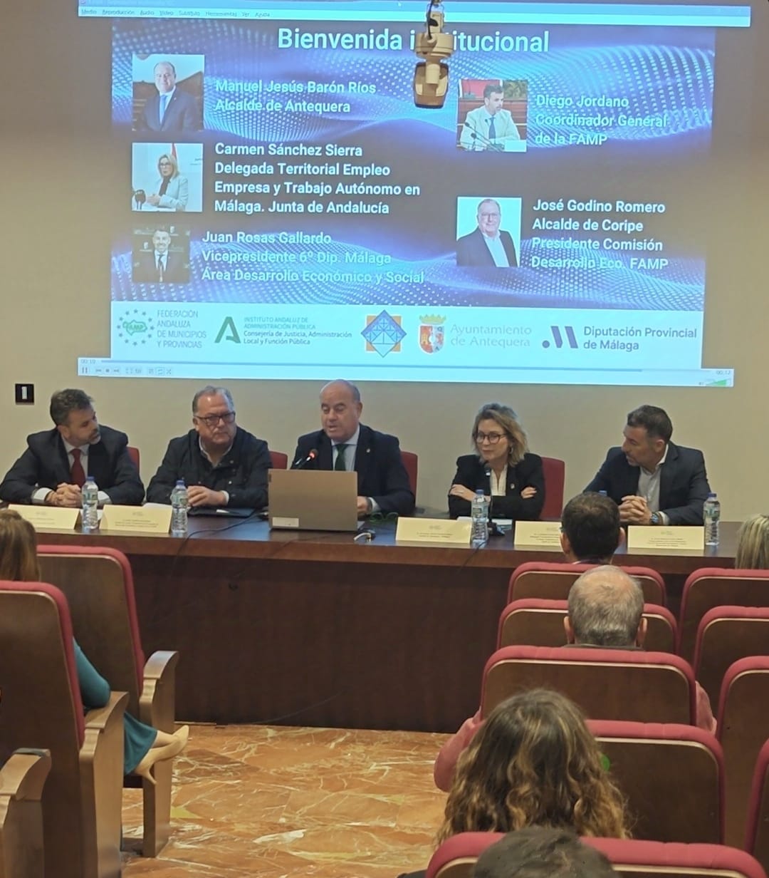 La jornada ha sido inaugurada por el alcalde de Antequera, Manolo Barón; la delegada territorial de Empleo, Empresa y Trabajo Autónomo de la Junta de Andalucía, Carmen Sánchez Sierra; el presidente de la Comisión de Desarrollo Económico y Empleo de la FAMP y alcalde de Coripe (Sevilla), José Godino; el vicepresidente y delegado del Área de Desarrollo Económico y Social de la Diputación de Málaga, Juan Rosas; y por el coordinador general de la federación, Diego Jordano.