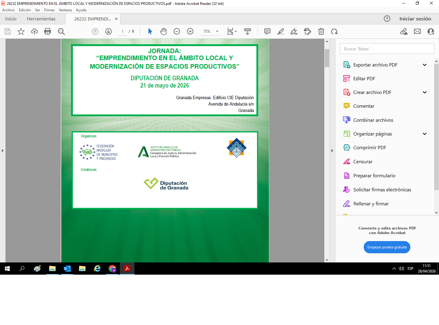Jornada de formación: EMPRENDIMIENTO EN EL ÁMBITO LOCAL Y MODERNIZACIÓN DE ESPACIOS PRODUCTIVOS