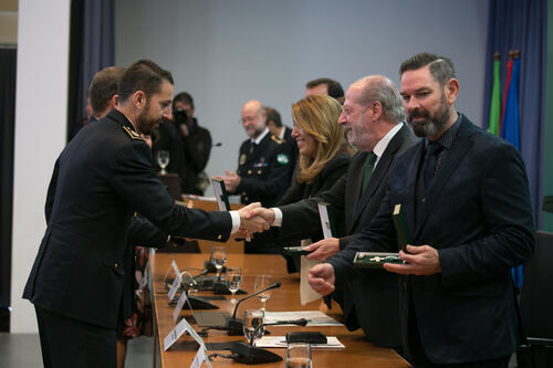 Rodríguez Villalobos resaltó que “la orden al mérito es intrínseca a la naturaleza del desempeño de cualquier policía local. Por eso hoy premiamos y reconocemos a aquellos que en su prestación de servicios o acciones, hicieron méritos excepcionales desde la Policía Local de Andalucía. Resulta reconfortante ver, por ejemplo, en la portada de algún diario en el día de ayer, la figura del policía local junto a los raíles y el tren descarrilado en Arahal”.