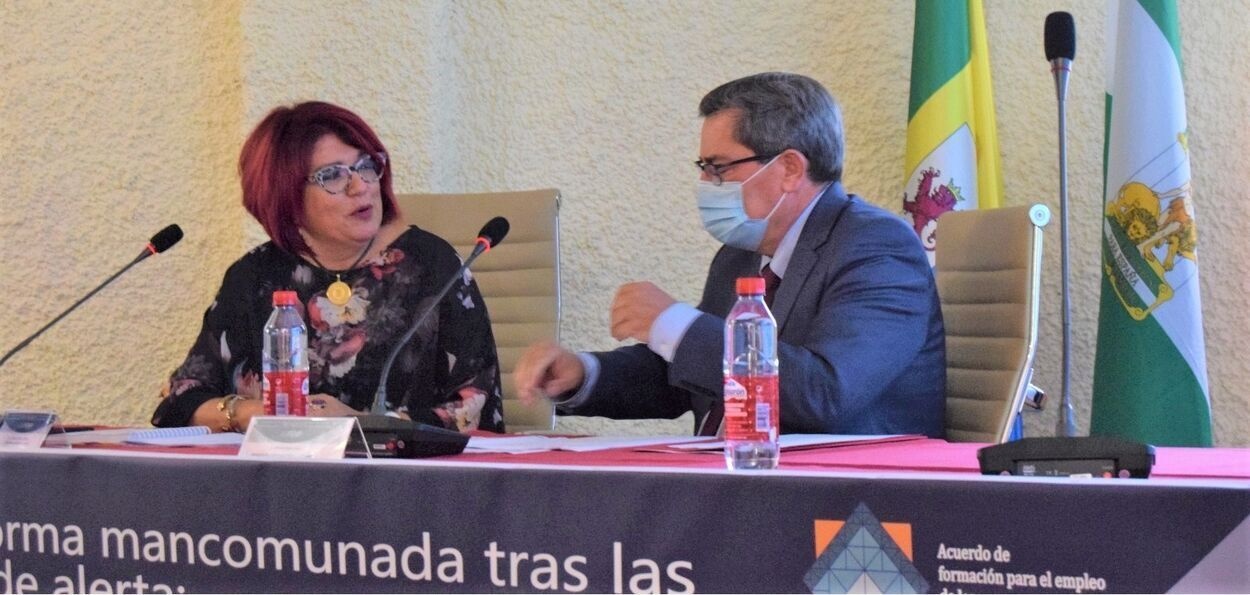 El presidente de la Comisión de Intermunicipalidad de la FAMP y presidente de la Diputación de Granada, José Entrena, y la secretaria general de la FAMP, Teresa Muela, analizaron el papel del municipalismo y el futuro de las mancomunidades, además de reconocer el trabajo esencial de la Federación Andaluza de Municipios y Provincias para desarrollar una estructura territorial, equilibrada y democrática de las entidades locales.